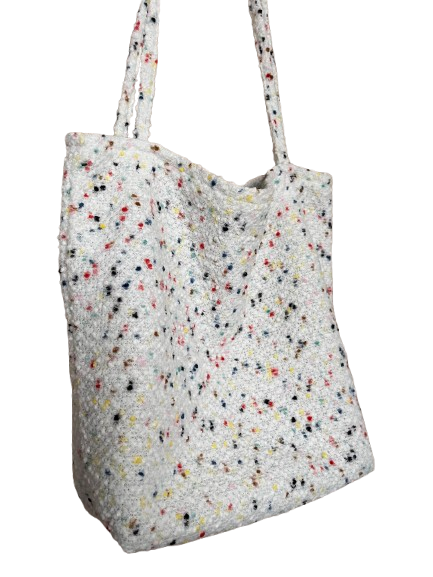 Jersey bijeli špricani : 36,5x31x10, ručke 65,5cm (podstava buckle zeleno žuta)