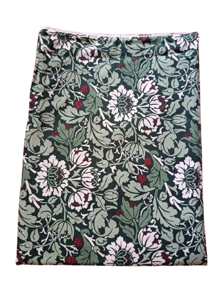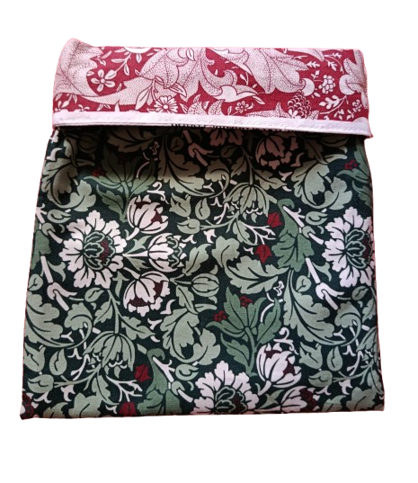 Praktičan detalj za sve one koji vole čuvati svoje knjige, omot-vrećica koja će nježno zagrliti vaše omiljeno štivo i sačuvati ga od habanja i gužvanja u torbi ili ruksaku. Napravljen je od pamučne tkanine iz poznate linije William Morris od 100 % pamuka, te je ovaj sa prekrasnim cvjetnim motivom, te se može oprati. Jedna strana je pojačana čvršćim stabilizatorom.