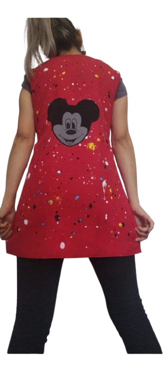 Još jedna vesela pregača za odajateljice od pamuka sa aplikacijom najpoznatijeg miša u povijesti-Miki Mouse, koji je i na prednjici i na leđima i velikim džepom na prednjici. Rade se po veličinama: xs, s, m, l i tako na dalje, ovisno o vašem konfekcijskom broju. Radimo sve u dogovoru s klijentom, što znaći od odabira materijala, boje, aplikacija i svega ostalog što ste zamislili da vaša kuta treba imati. Vežu se naprijed i iza ili može i sastrane, zavisi ko kako voli. Sve su rađene duplo da budu kvalitetnije i dugotrajne. Sve su dužine 70cm, ali može bit i duža ako to želite. Sve se radi po narudžbi u dogovoru.